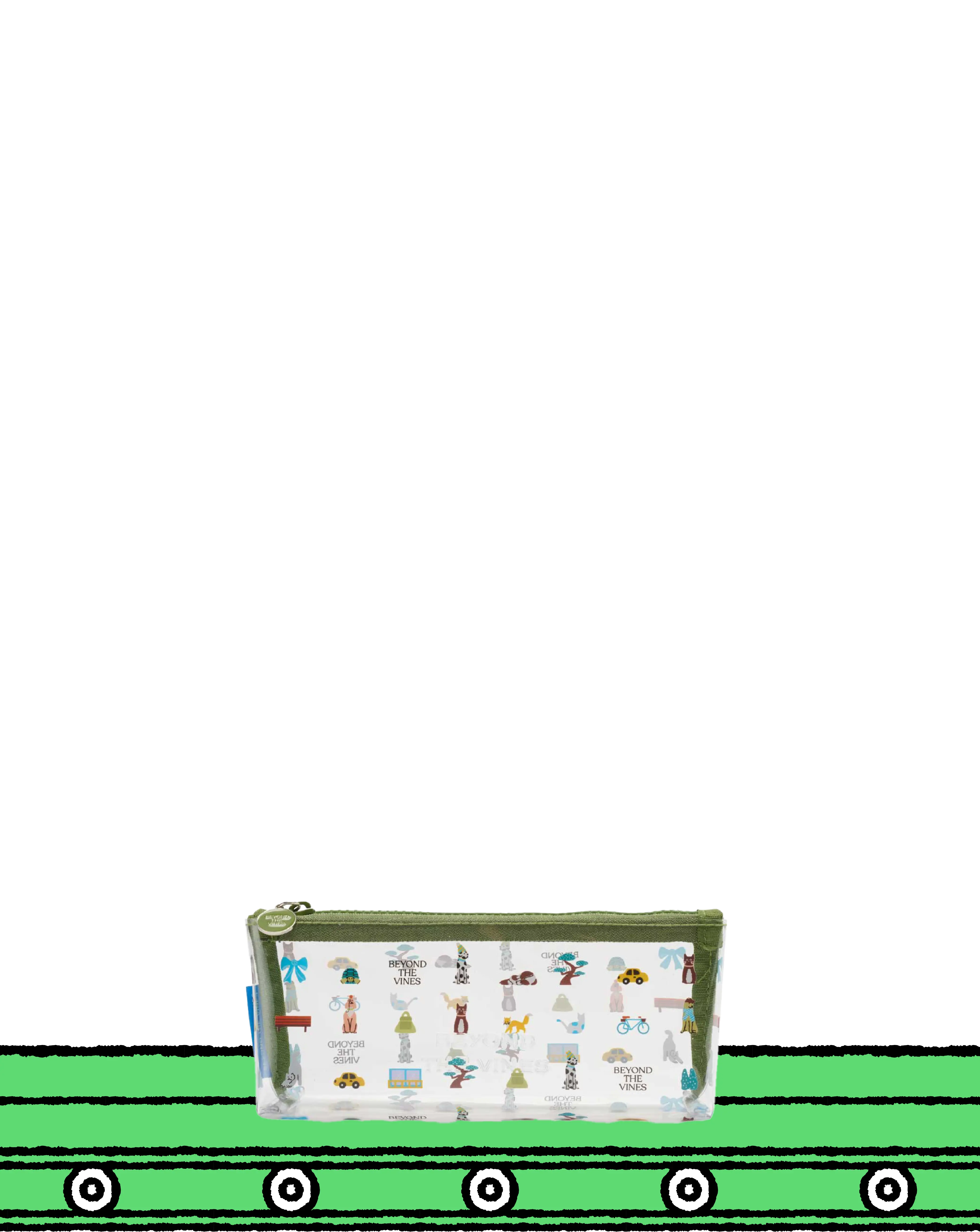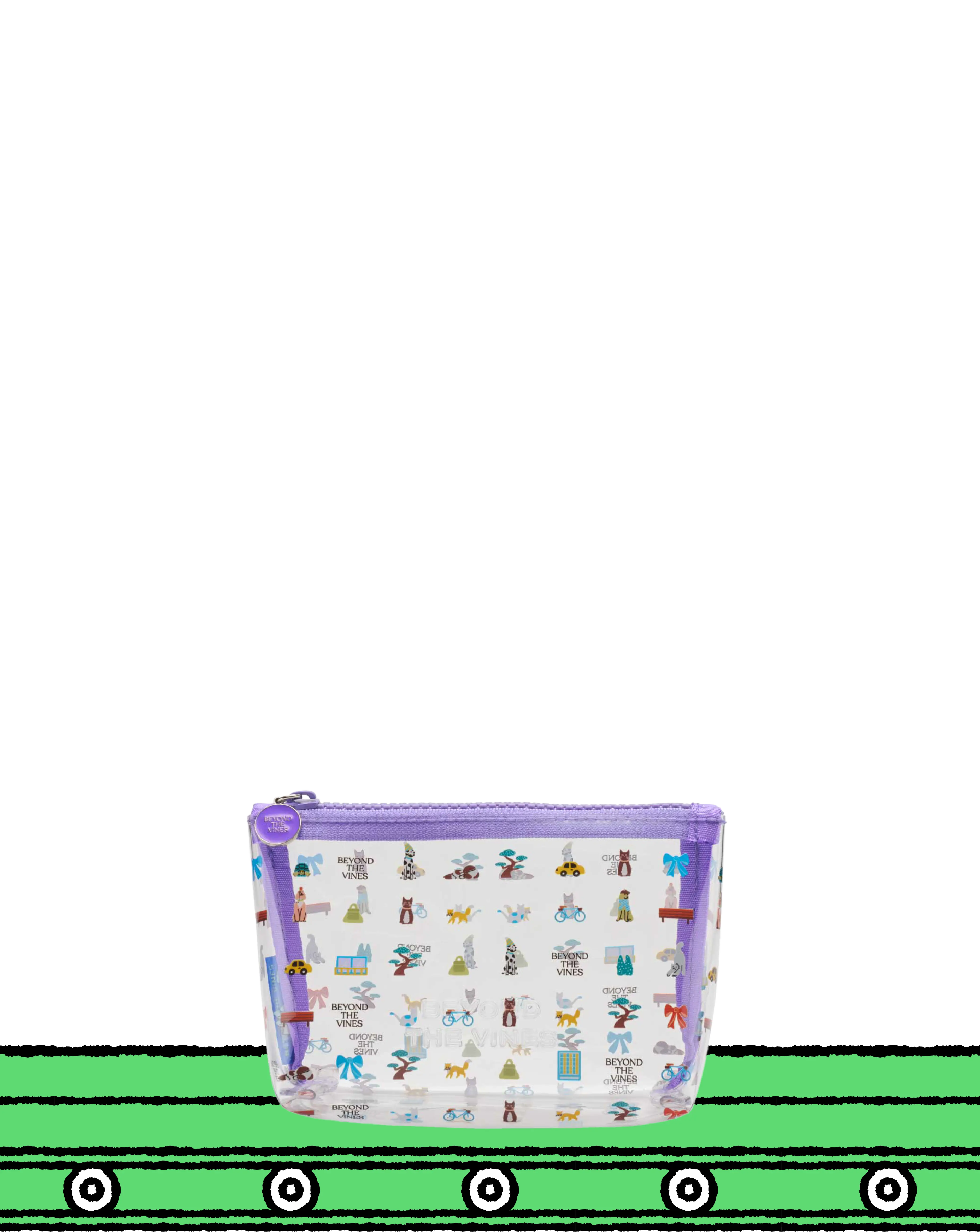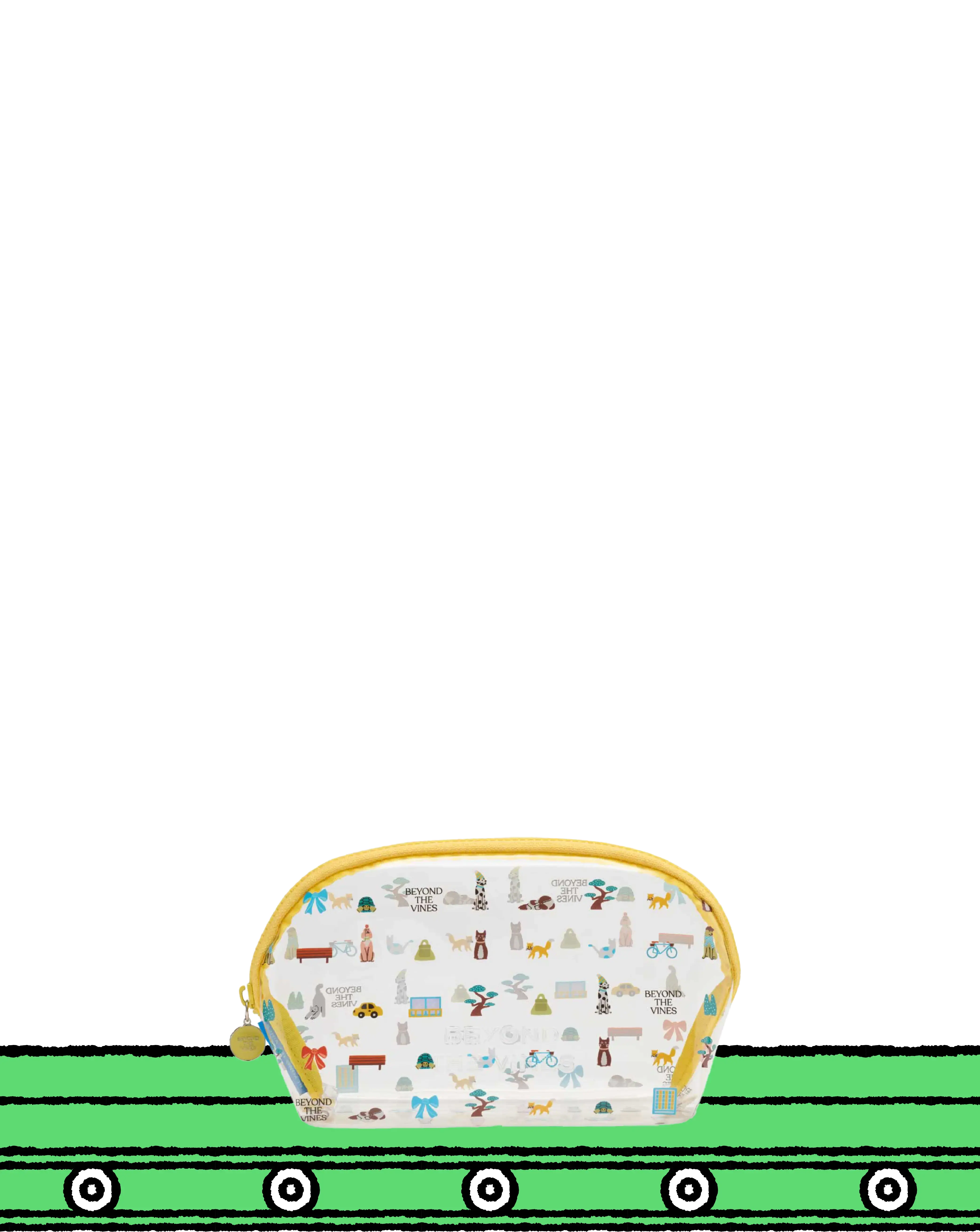 Designed with our Beyond Boulevard graphic and a contrast zipper, this clear PVC pouch has a rectangular silhouette and is the perfect add on to contain your travel items. It is finished with the brand logo embossed on the front.