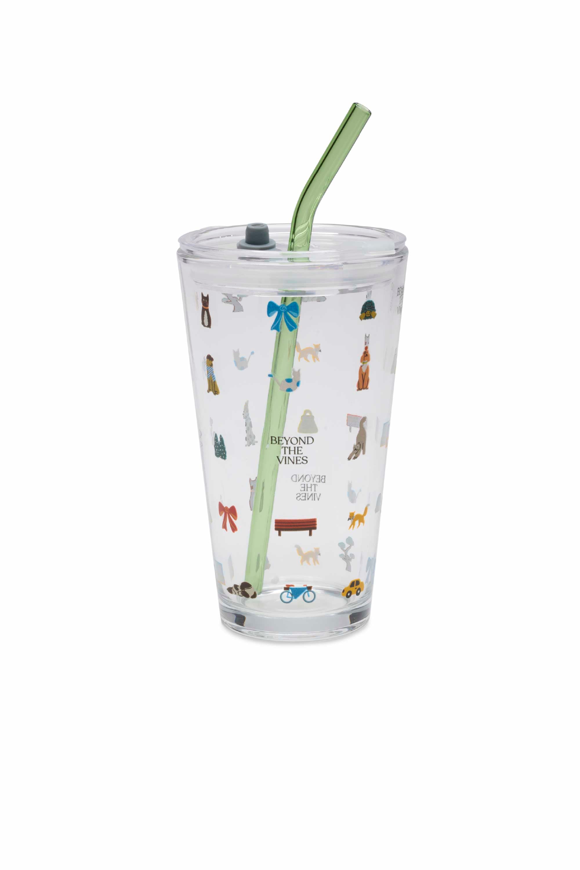 Designed with our Beyond Boulevard graphic, this 480ml to-go tumbler comes with a glass straw that can be used separately. Perfect for cold drinks, it has a spill proof cover. It is oven and microwave safe. It can also hold hot drinks of up to 100 degrees.