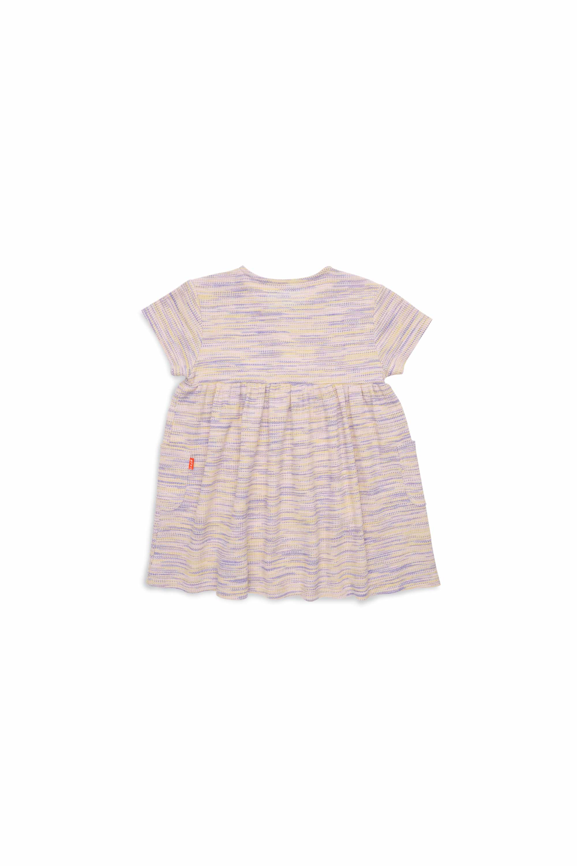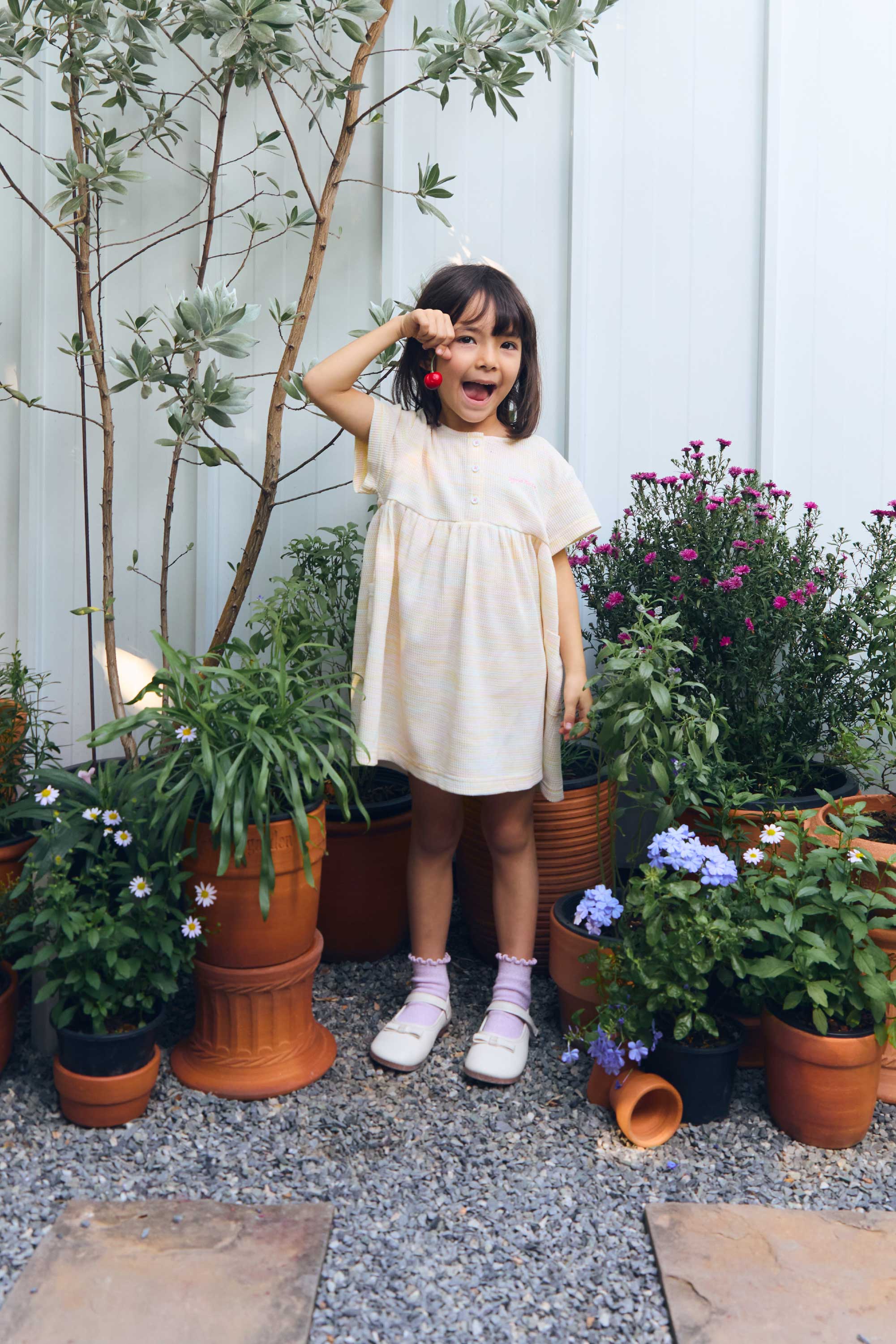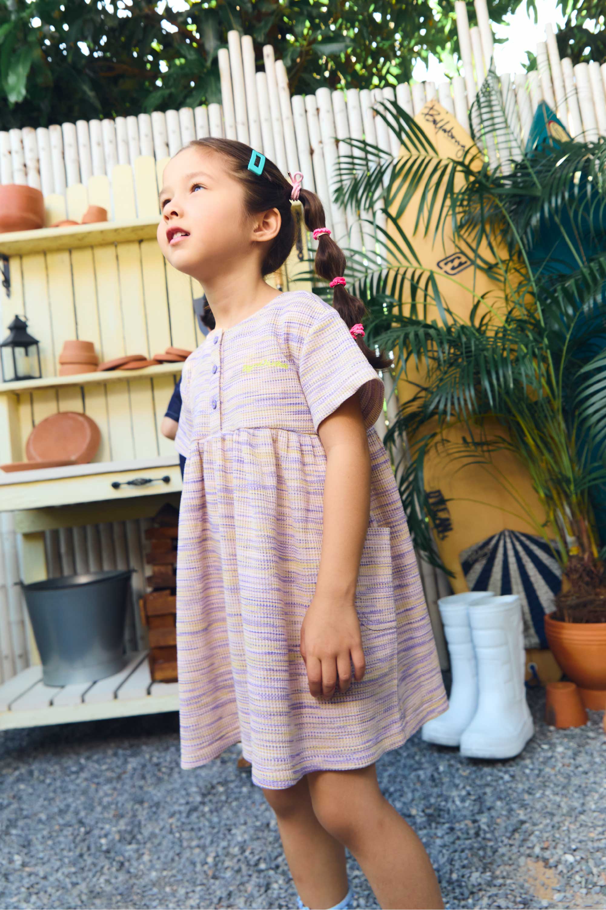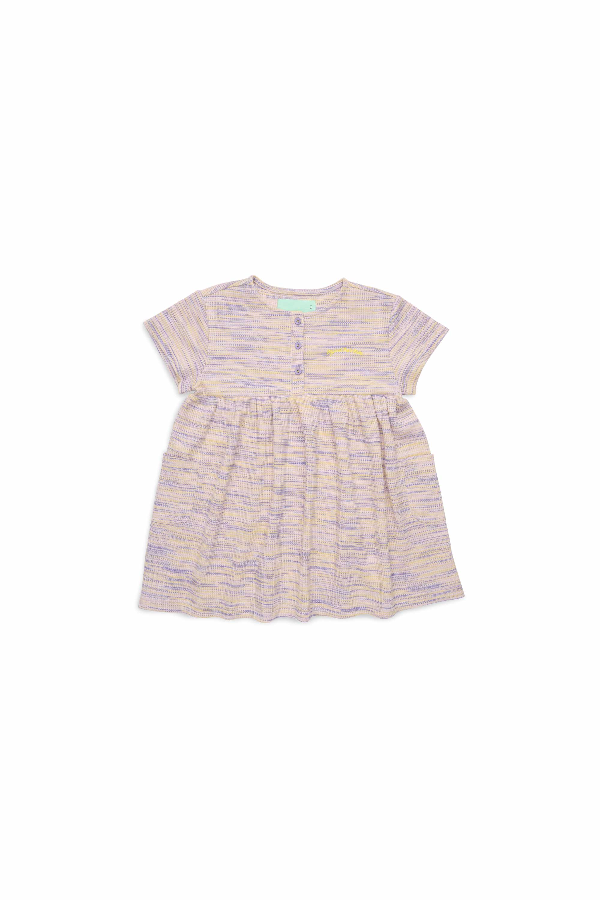 Made from textured waffle knit jersey, this dress is designed for easy, everyday wear. It features a button-front closure and gathered detailing that creates a relaxed, floaty shape. Finished with a contrast logo embroidery, it adds a small playful touch while staying comfortable throughout the day.