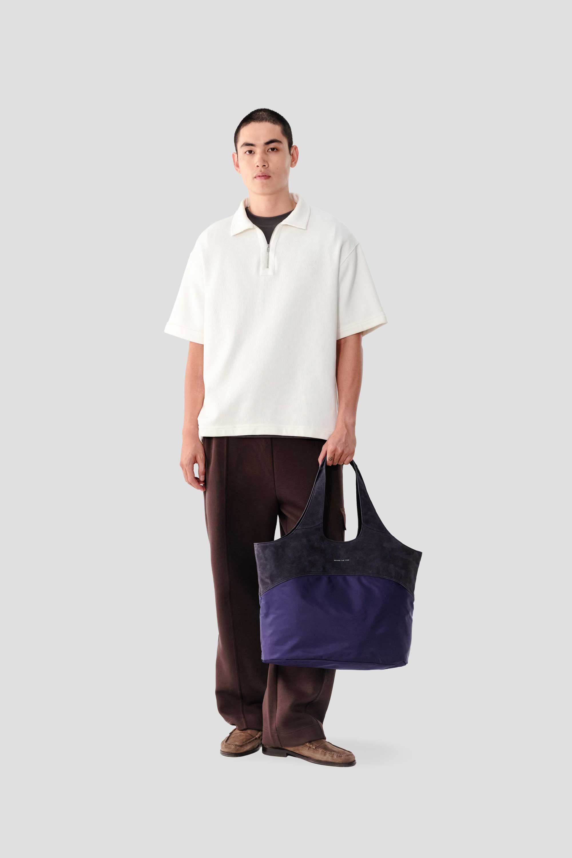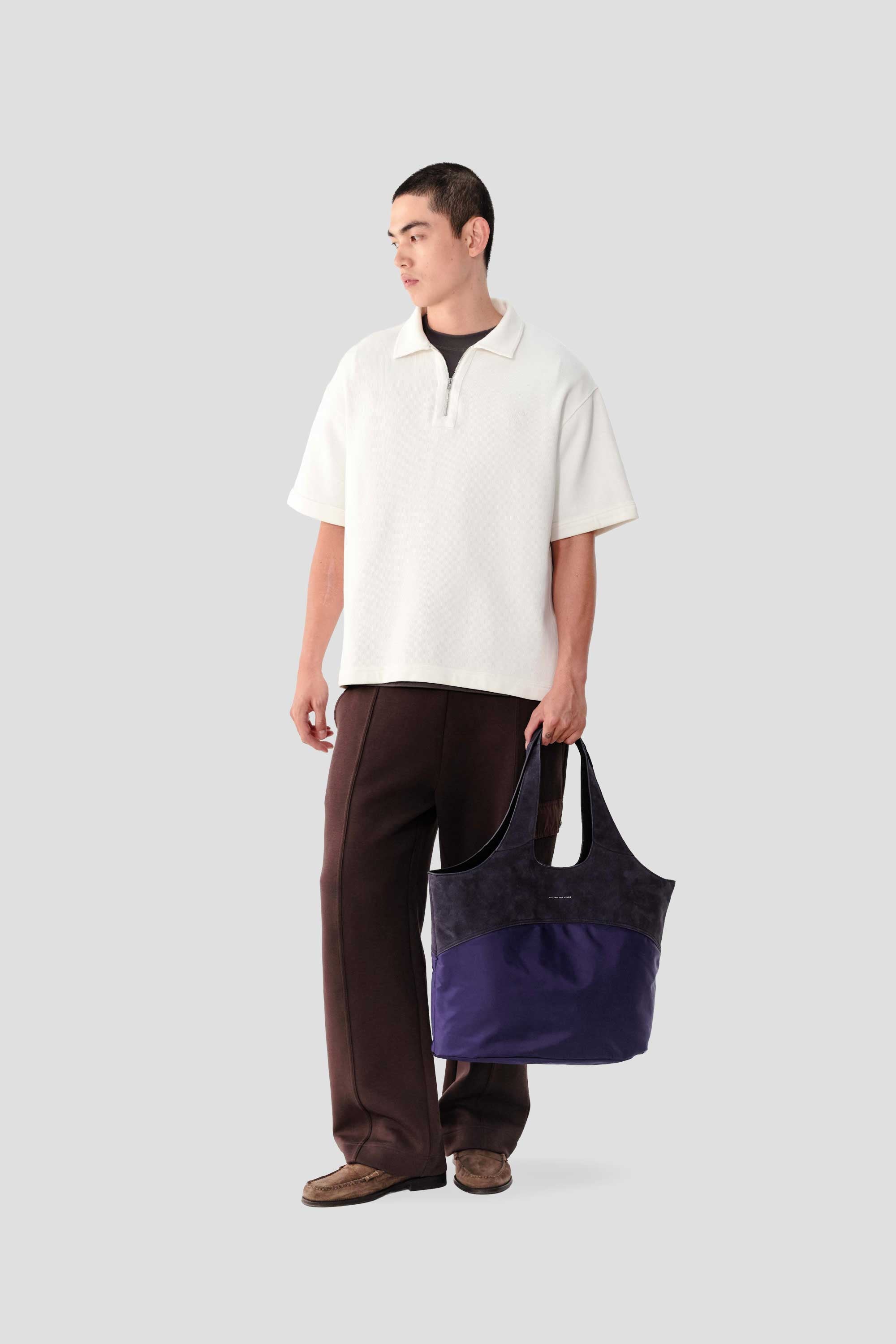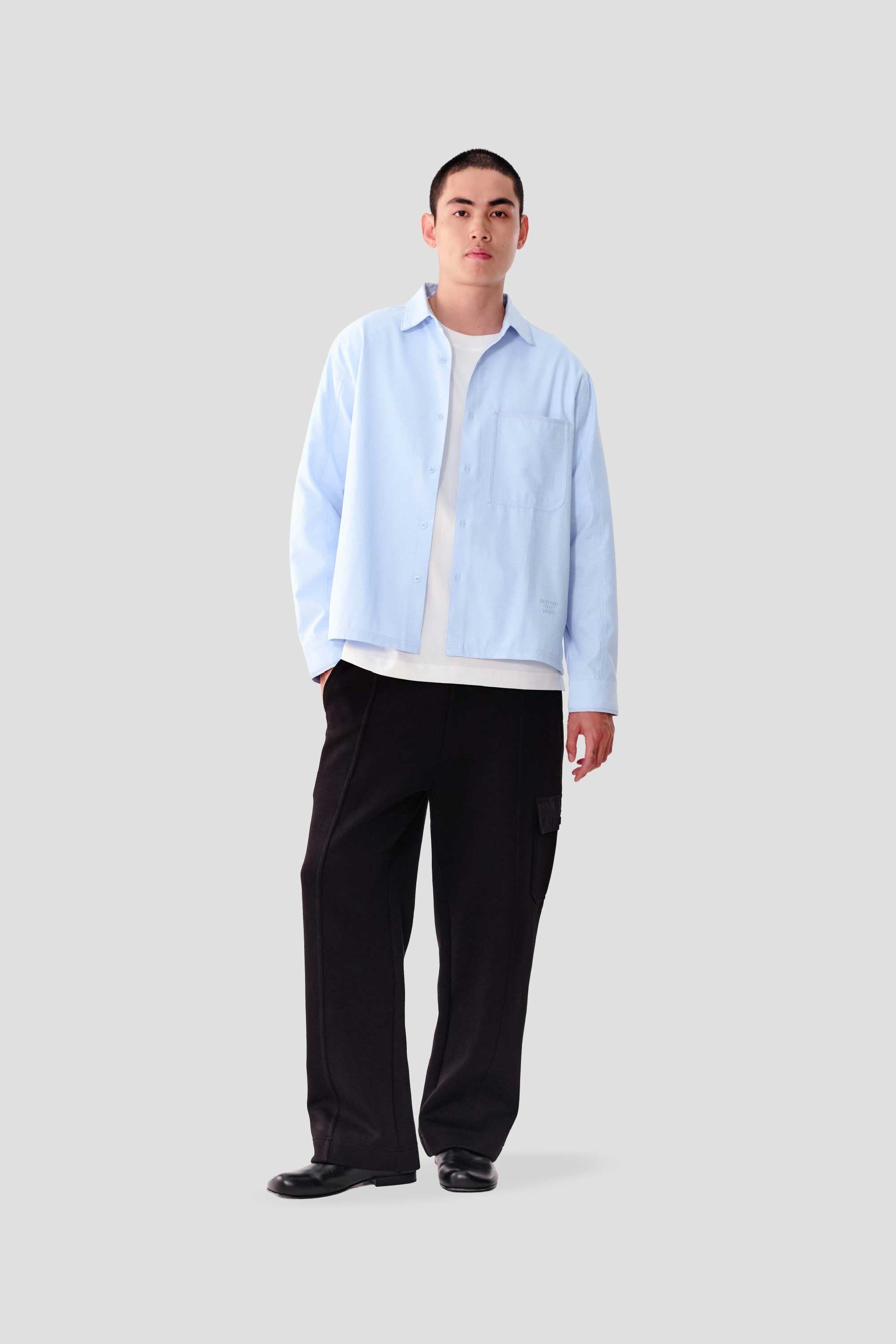 These jersey cargo trousers feature a relaxed, straight-cut silhouette with centre leg seams. Slanted side pockets provide easy access, while patch pockets on the left leg and back are finished with tonal nylon flaps. An elasticated waistband with an internal drawstring offers adjustable comfort, complemented by an understated embroidered logo.