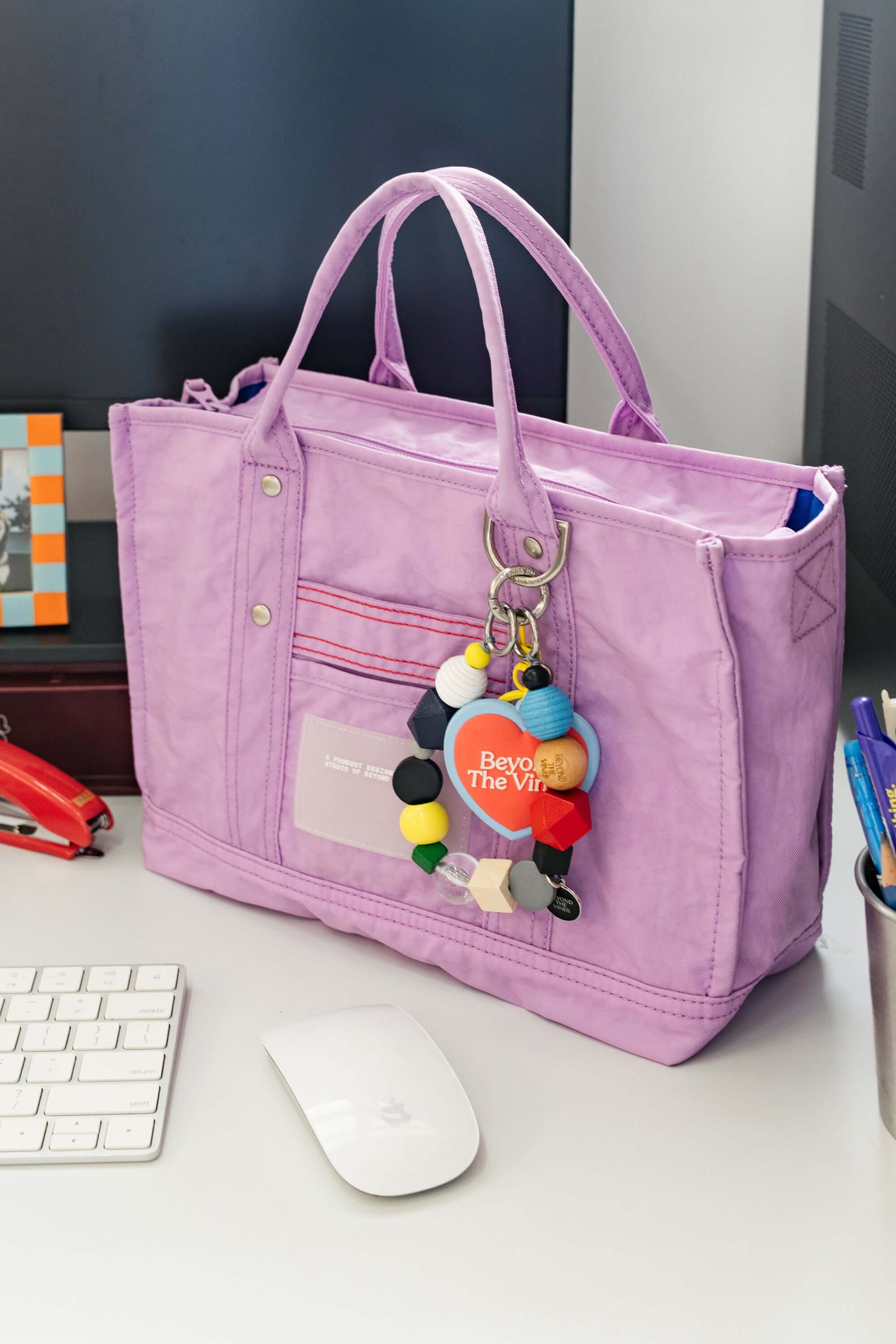A pocket-sized dose of fun. The Mini Dumpling Doodle is a playful keychain-style charm strung with a vibrant mix of wood and acrylic beads in bold primary hues and graphic shapes. Clip it onto your keys, belt loop, or Bag for an easy pop of personality. Lightweight and full of character, it’s made to go wherever you do.