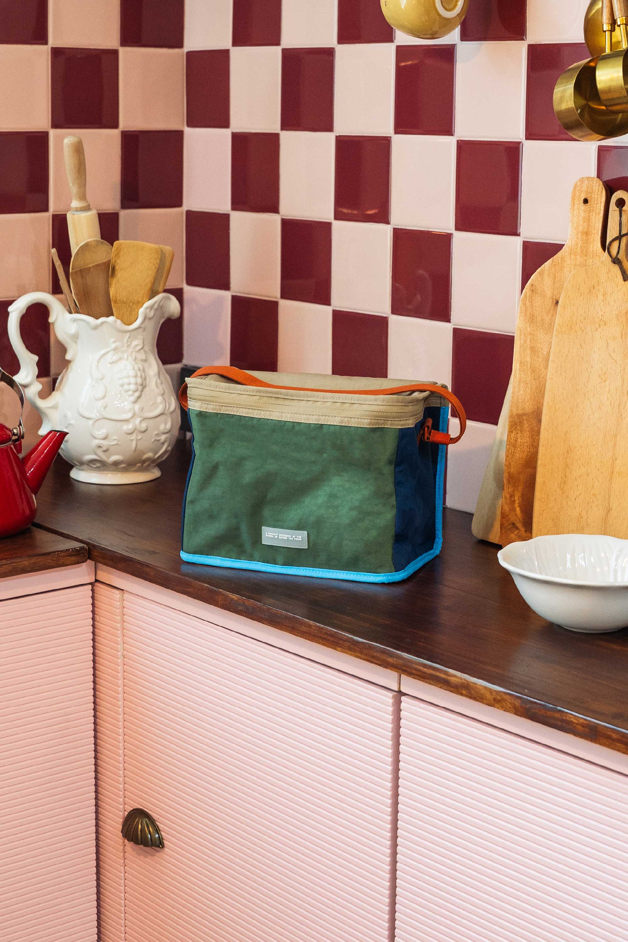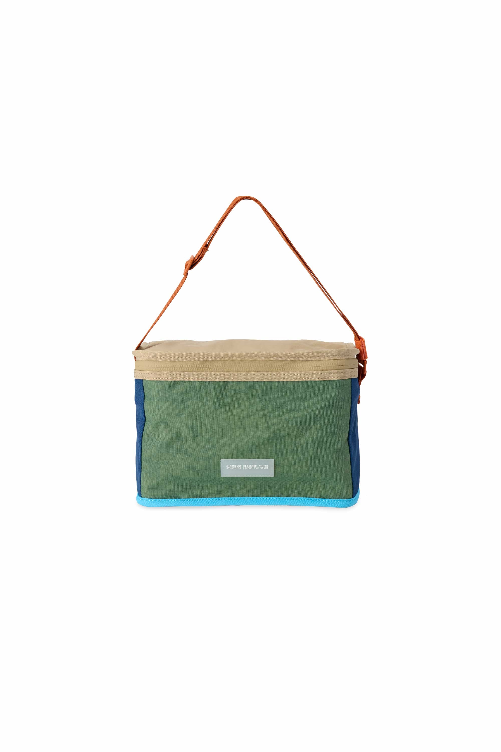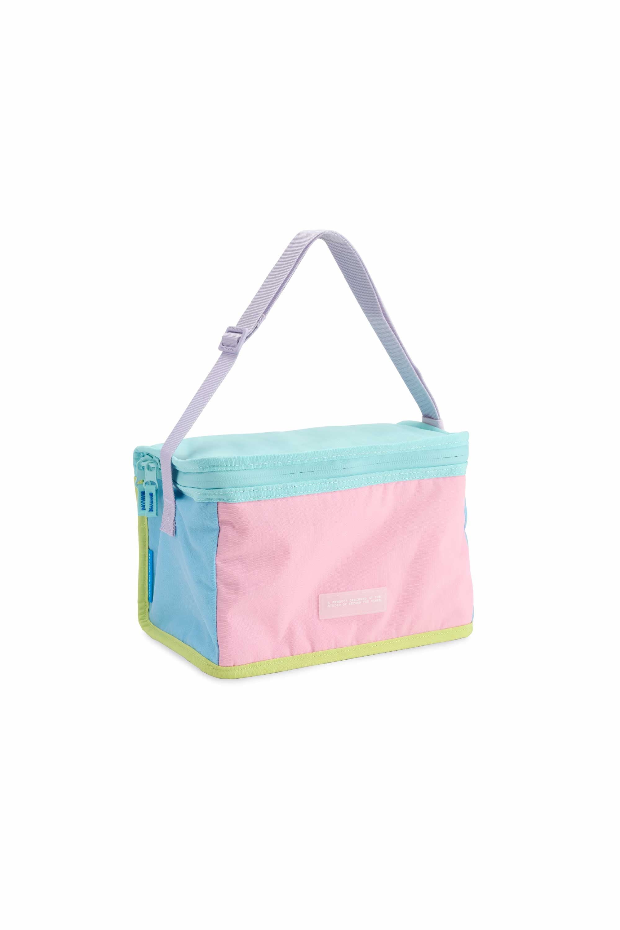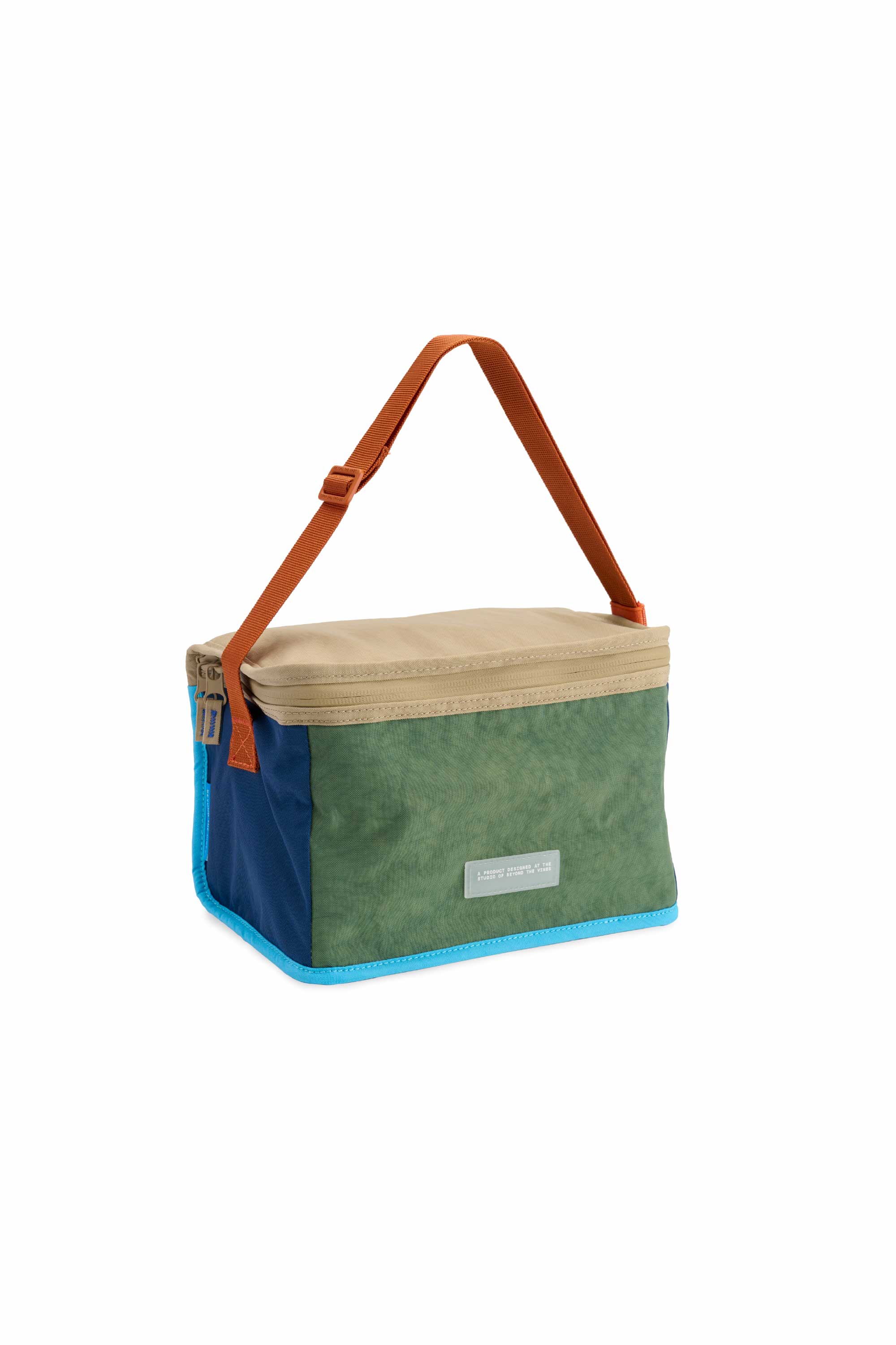 Made from structured nylon, this small colourblock lunch bag is designed with a waterproof zip opening and a contrast adjustable webbing strap. The insulated interior features a zippered mesh pocket and side patch pockets for cutlery and small essentials. It is finished with a roomy back pocket and our rubber product label on the front.