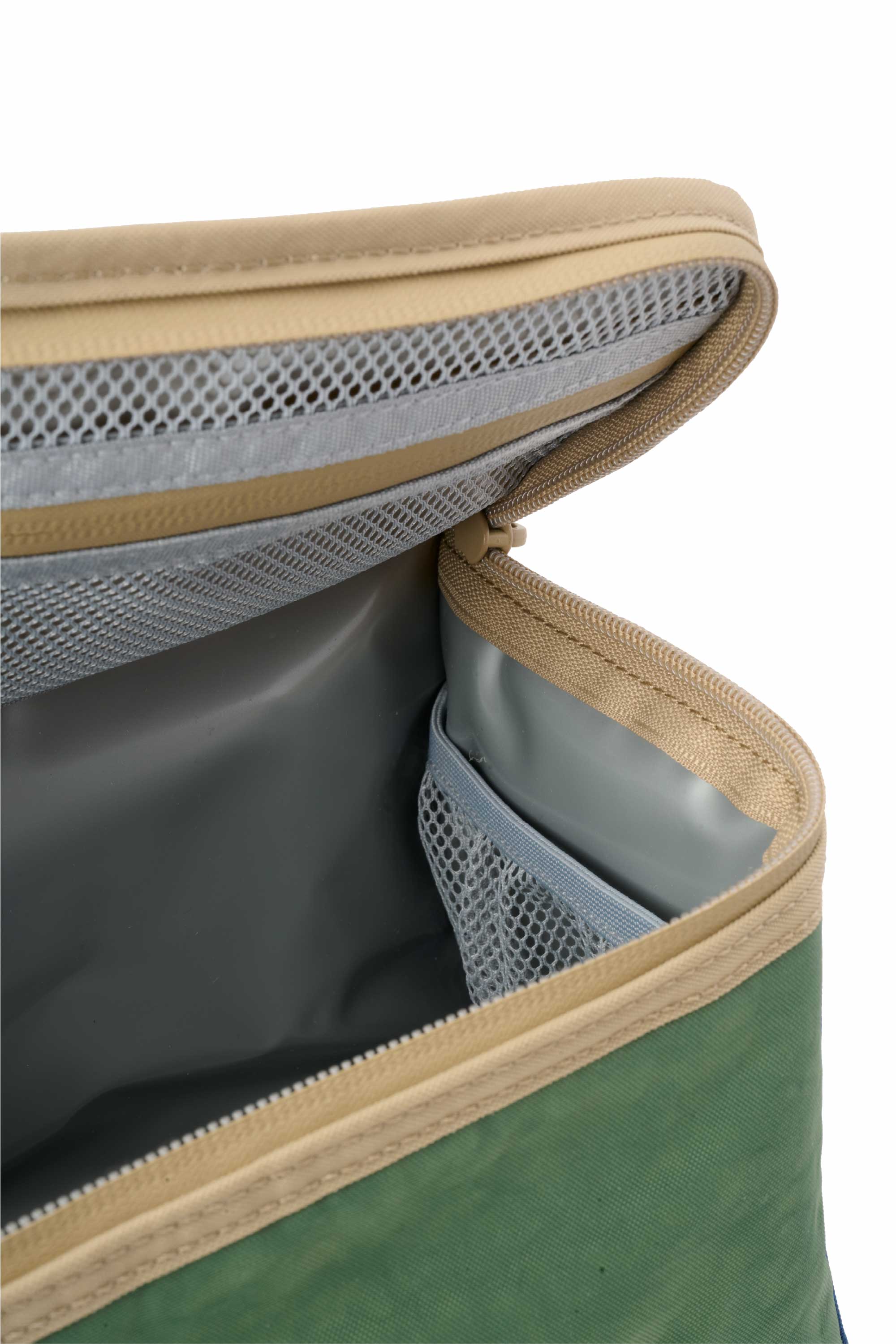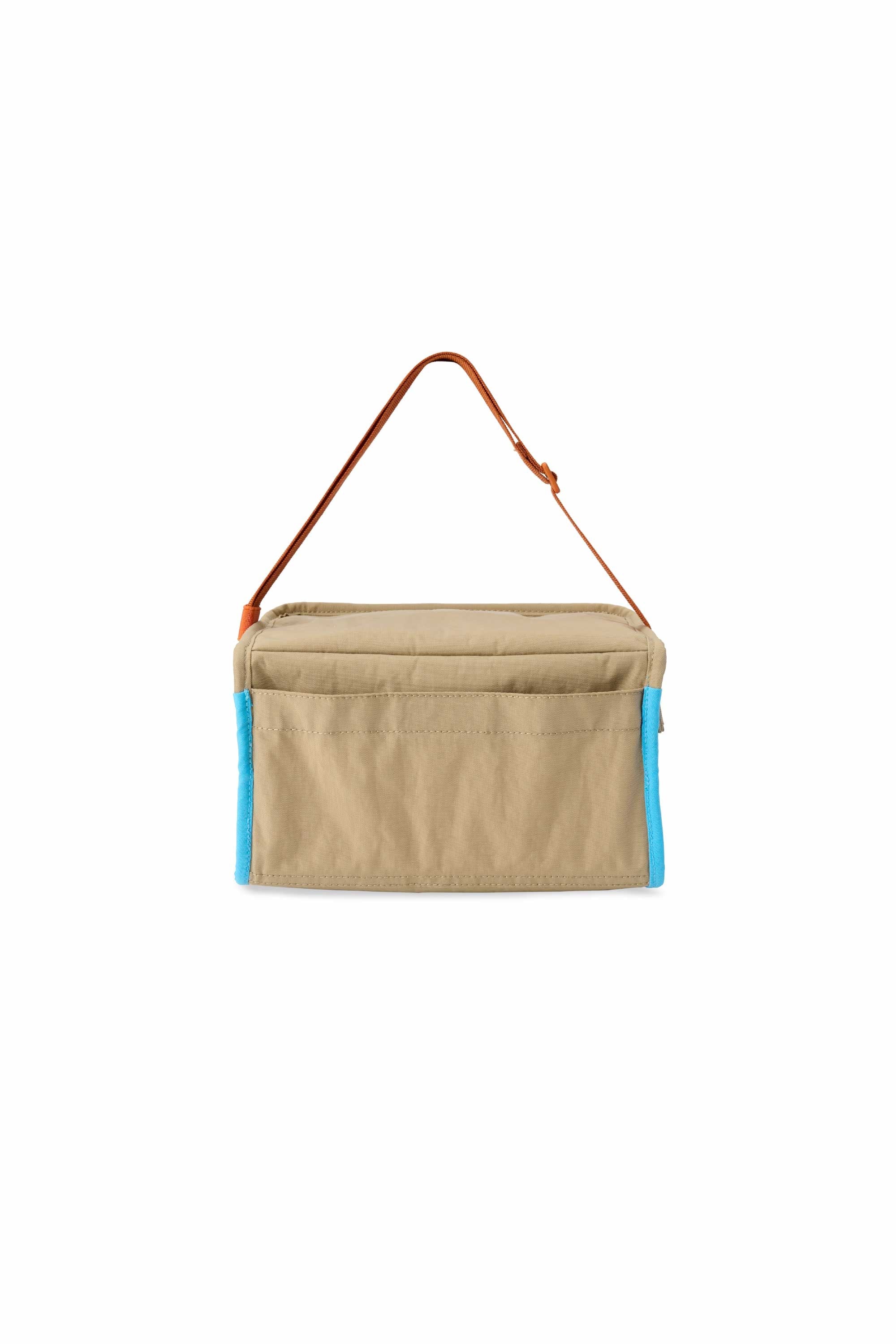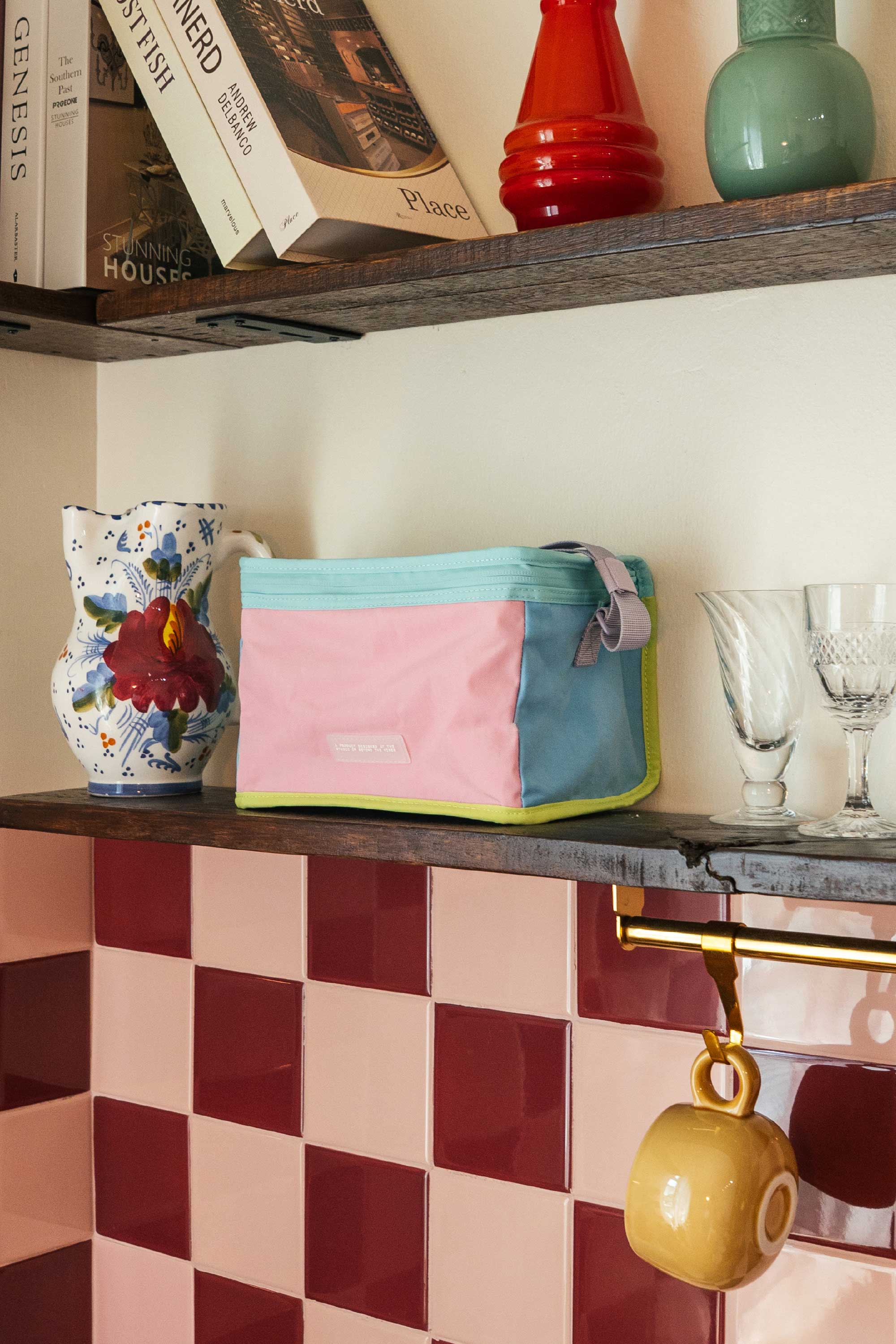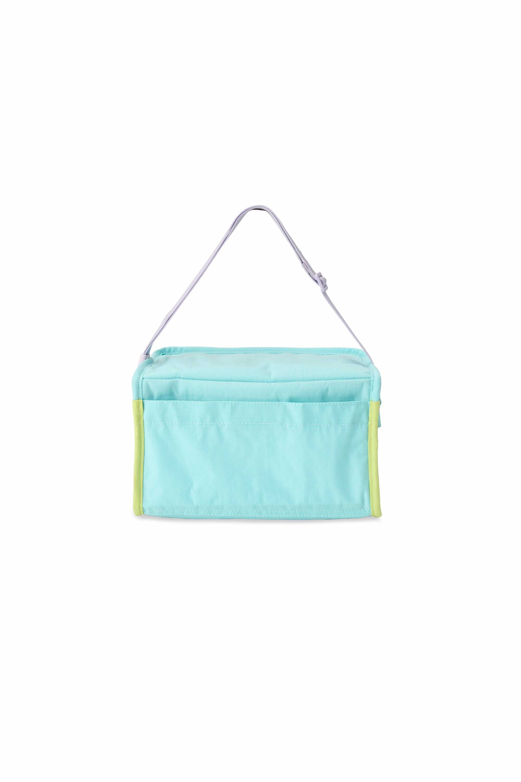 Made from structured nylon, this small colourblock lunch bag is designed with a waterproof zip opening and a contrast adjustable webbing strap. The insulated interior features a zippered mesh pocket and side patch pockets for cutlery and small essentials. It is finished with a roomy back pocket and our rubber product label on the front.