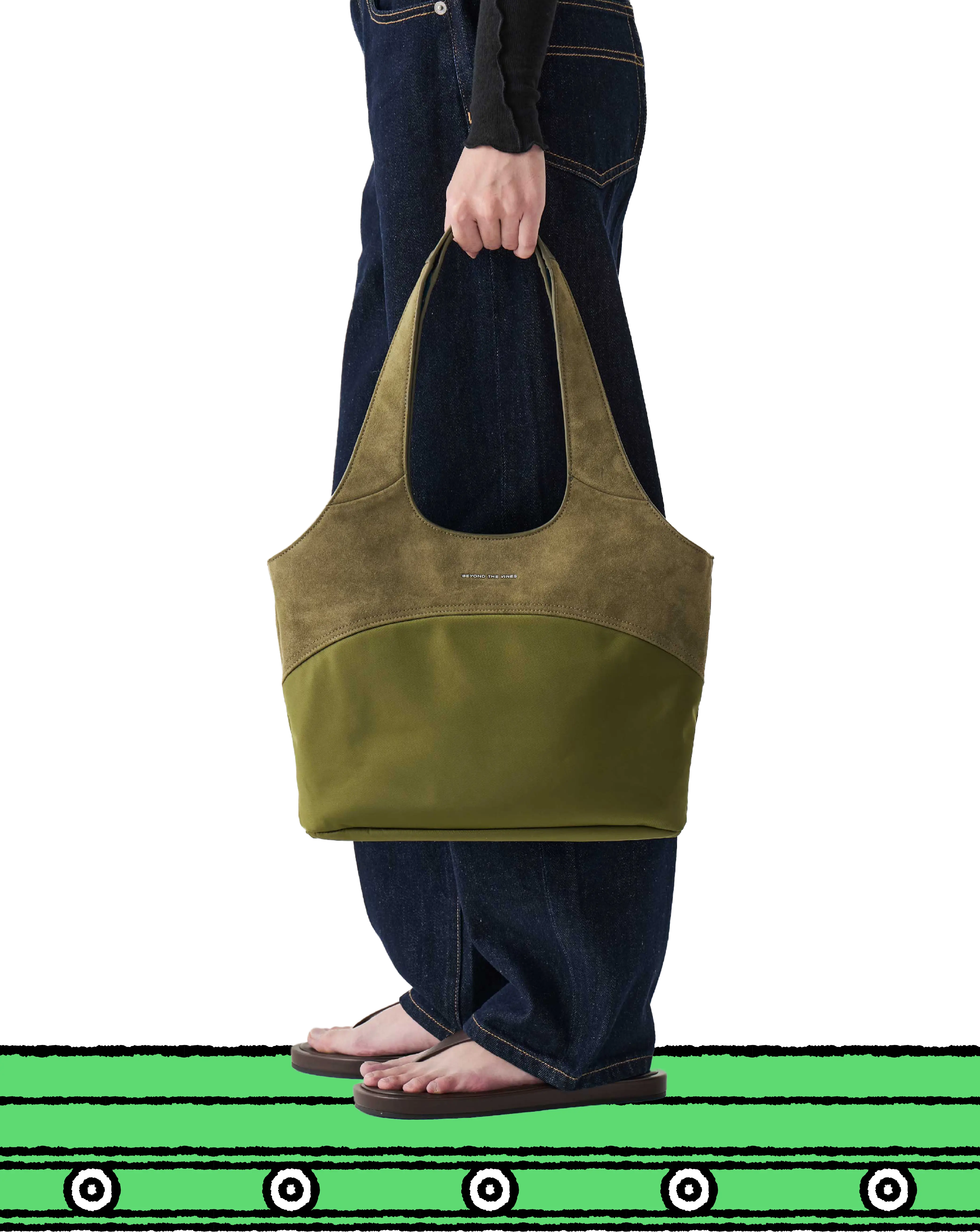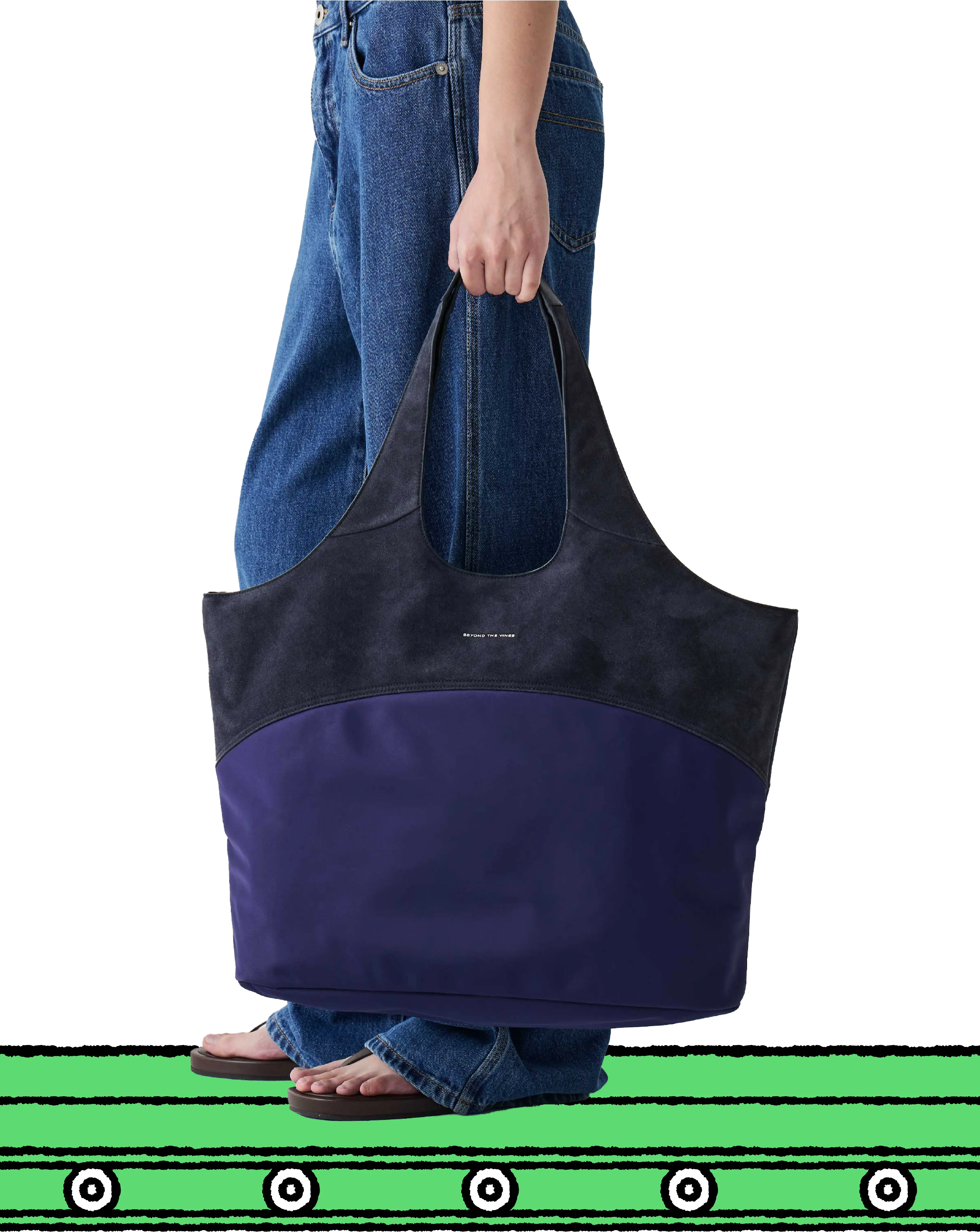 Made from recycled suede and nylon, the Studio Tote features a streamline silhouette using a mix of materials. Designed with a curved panel and an embossed logo on the front, the Studio Tote is reversible with the use of contrast colours on the inside. It is finished with an inner zipper and a clean magnetic closure at the opening that can be used on both sides.