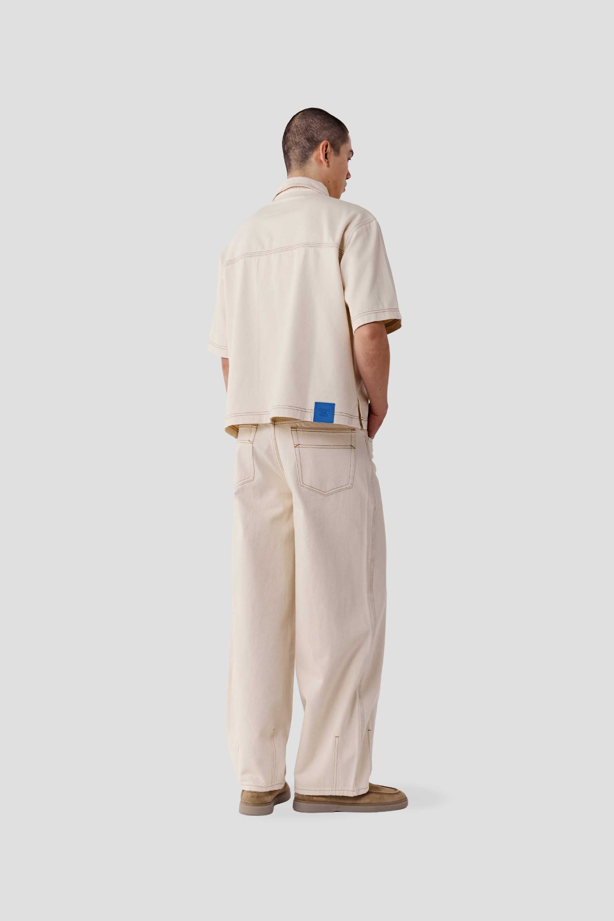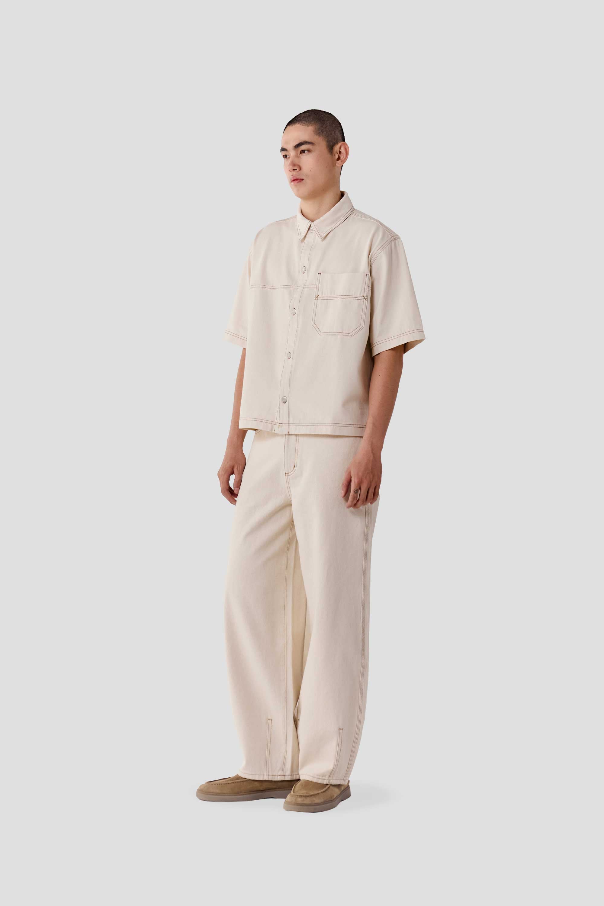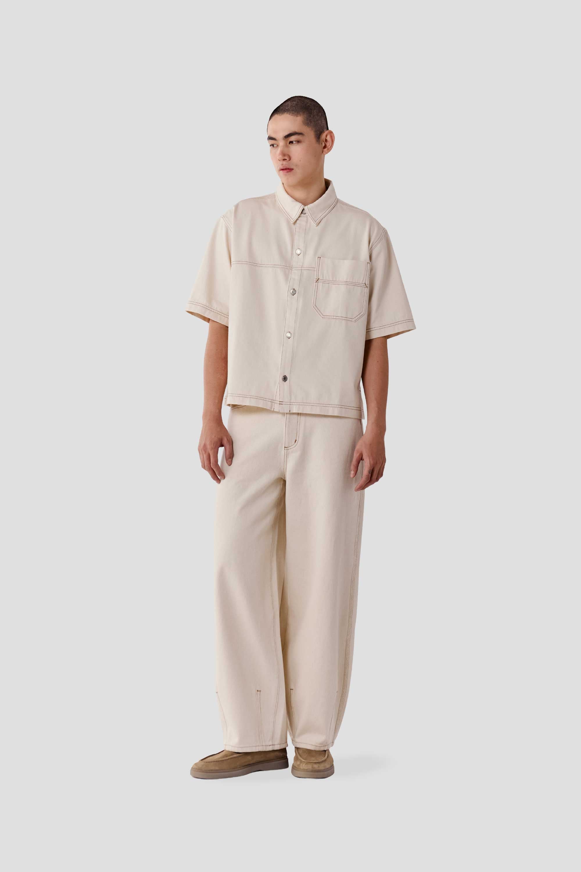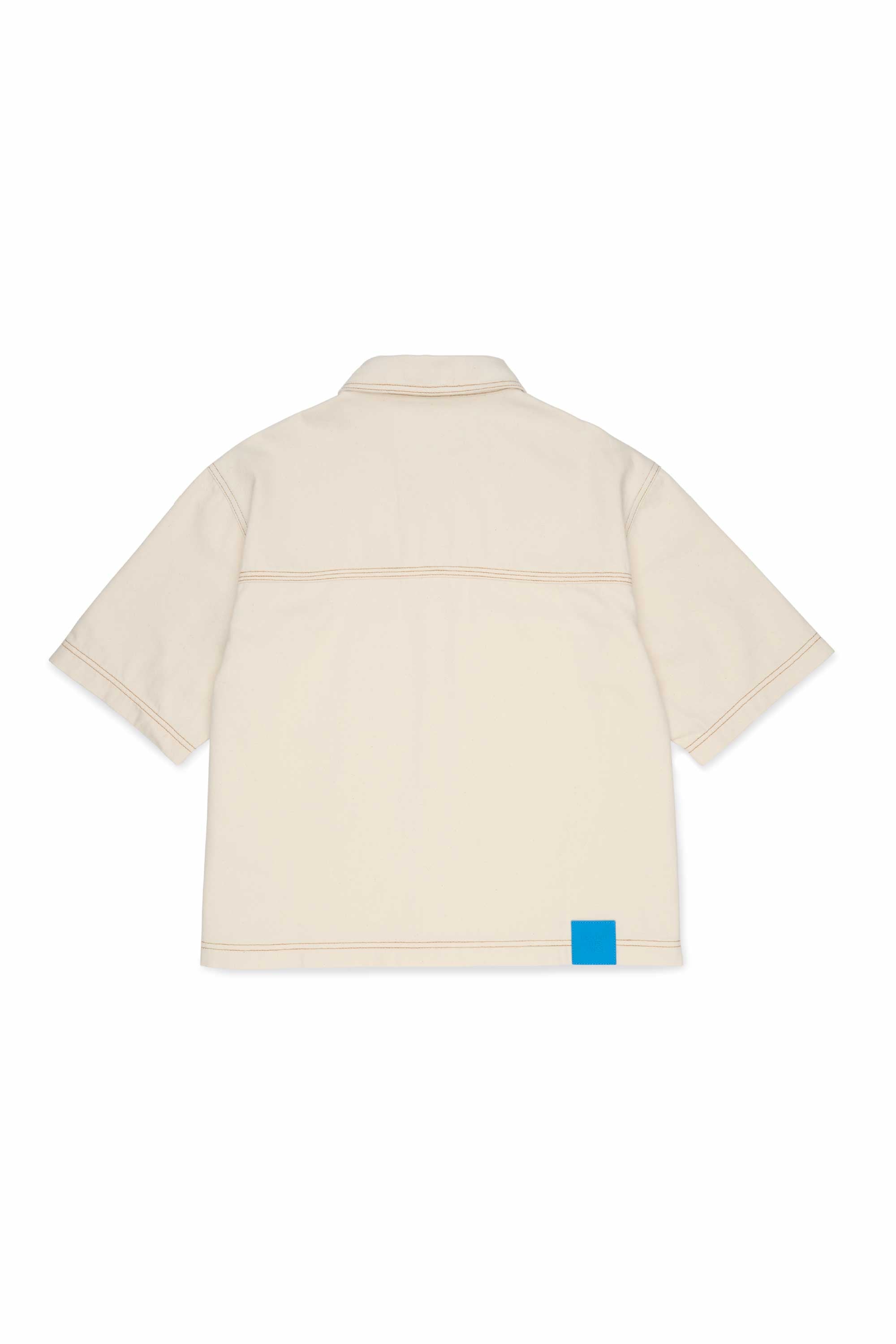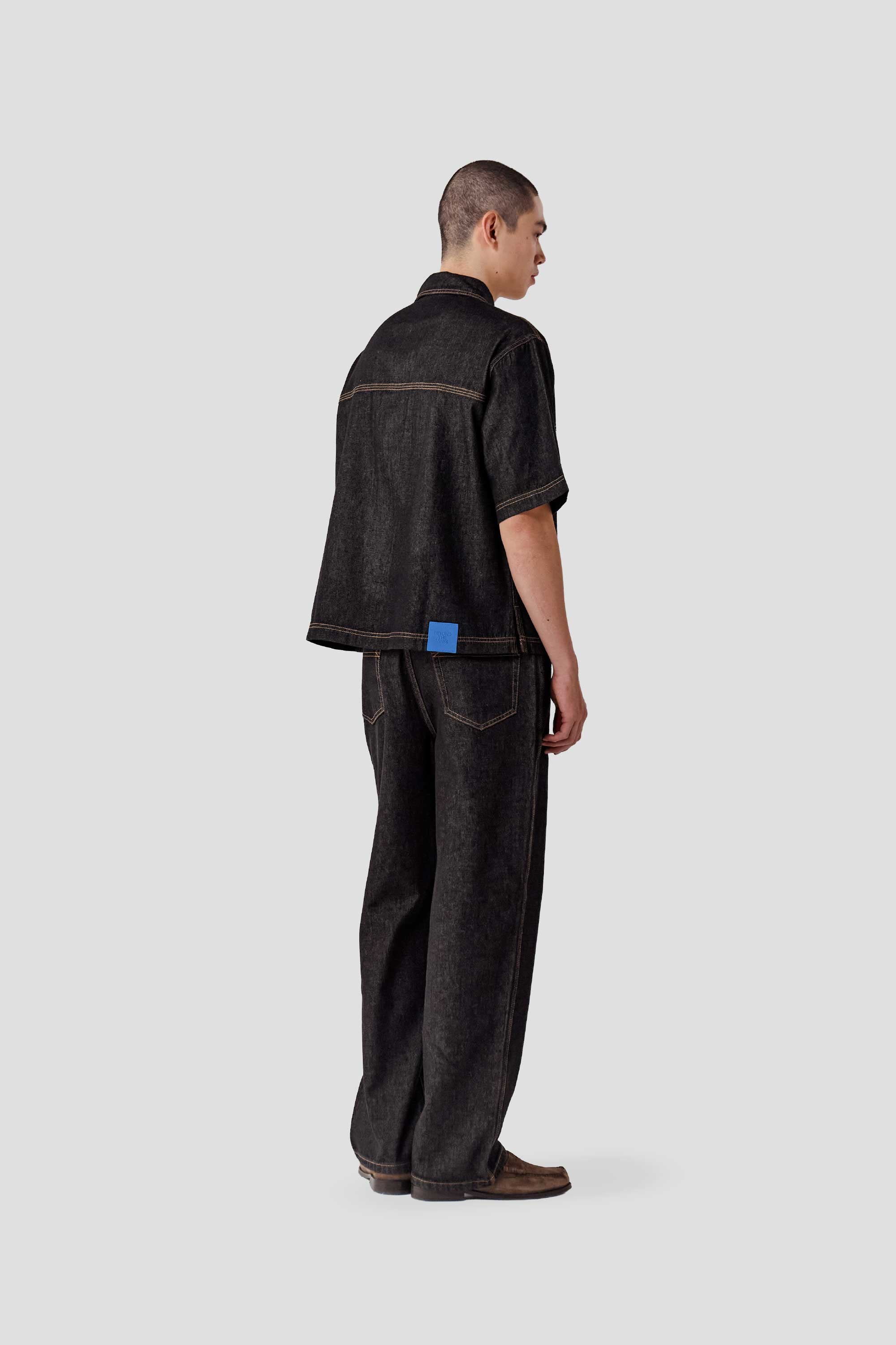 Made from 100% soft cotton denim, this unisex shirt features a boxy silhouette, a classic collar and a full button down placket. Designed with contrast stitching details and a back yoke, it is finished with branded metal buttons and an engineer blue suede patch on the back hem.