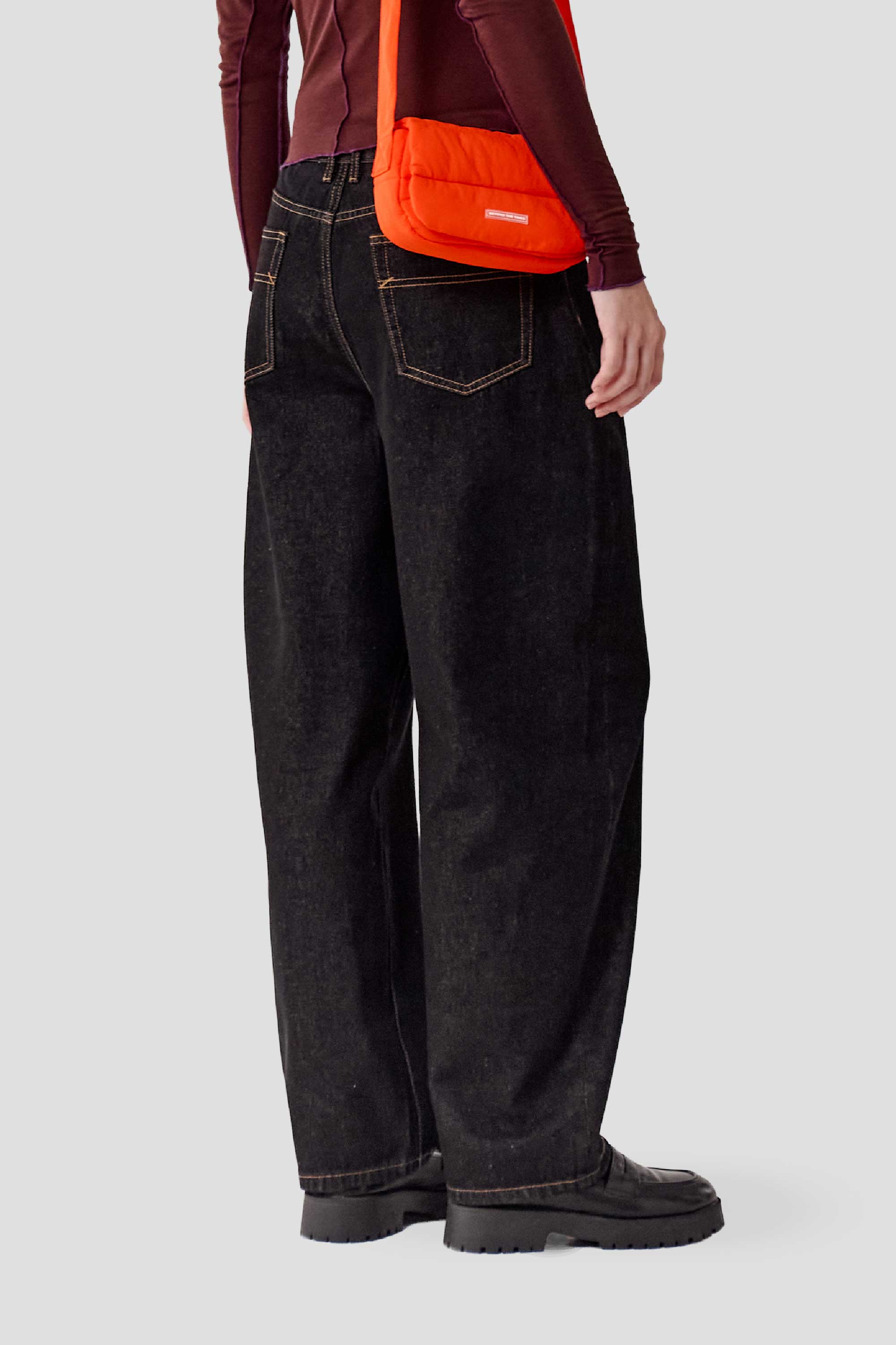 Expect some colour transfer in the first few washes. Wash cold in a garment bag on a gentle cycle with similar colours. Line dry only; do not tumble dry. Slight irregularities and up to 5% shrinkage are natural to denim. Colour may transfer to light fabrics—wear with care as your denim evolves over time.